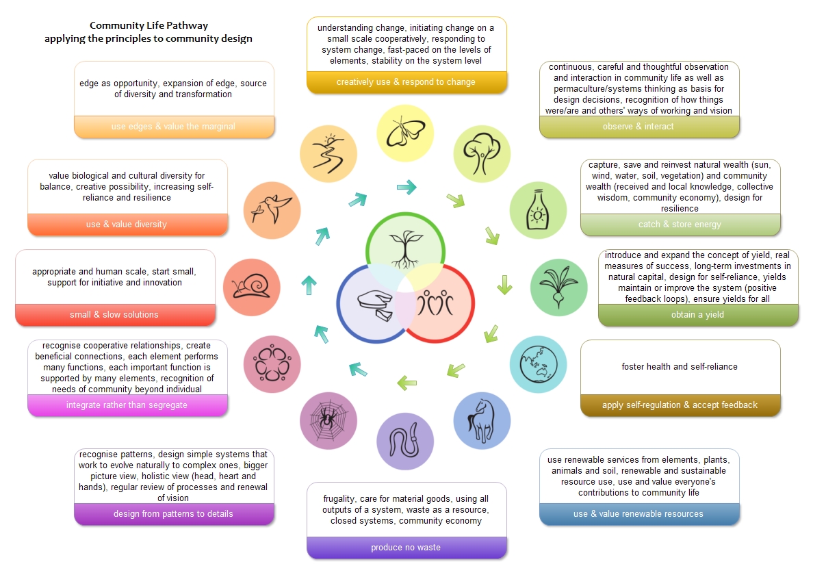 A permakultúra a társadalmi fenntarthatóságot gyakorlatilag forradalmasítja, ha elkezdjük ezeket az alapelveket a társas viszonyainkban, a közösségfejlesztési munkánkban is alkalmazni.
