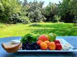 Hőség idején egy permakultúrás kert: oázis. Reggelire friss cseresznyét, meggyet, barackot ad, netán ribizlit, és sok más egyebet. A fák alatt legelészve nehéz nem észrevenni ahogy ápol, eltakar, ellát, megtart, megvéd. Például a melegtől is. A természet kegyes, ha hagyjuk érvényesülni és megtanulunk vele együtt élni…