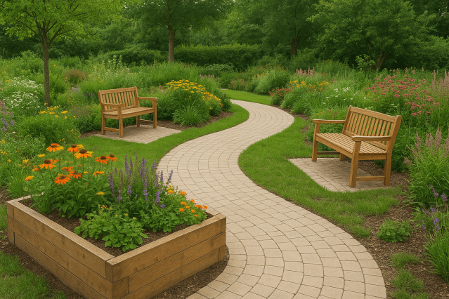 - A színek, formák, illatok segítenek a tájékozódásban (pl. egy illatos levendulás rész, vagy egy színes pad mint támpont).